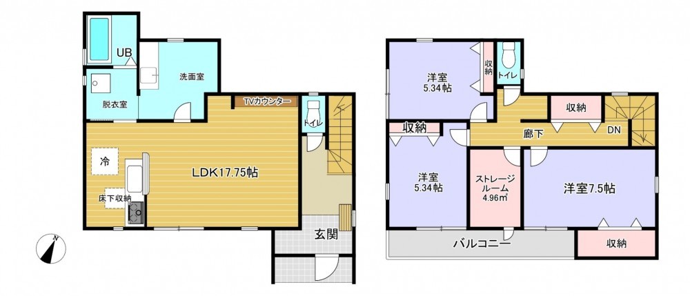 - 側溝、カウンターキッチン、IHクッキングヒーター、シャンプードレッサー、浴室乾燥機、追い焚き、モニタ付インターホン、床下収納