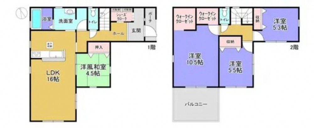 - ウォークインクローゼット、モニタ付インターホン、駐車場2台分、床下収納、トイレ2箇所