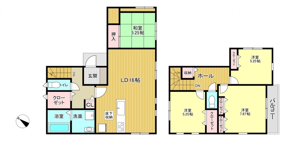 - システムキッチン、モニタ付インターホン、床下収納、ペアガラス、タグキー搭載、24時間換気、